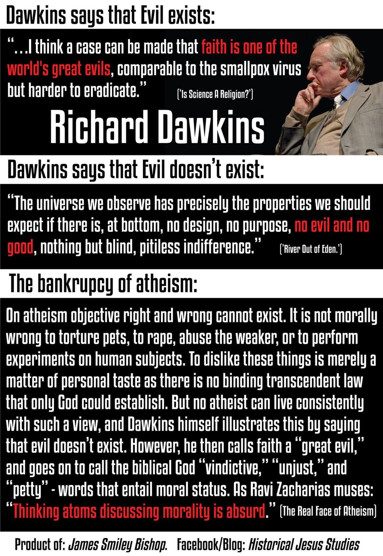 It seems that Richard Dawkins is arguing with himself- he is suffering with great bouts of confusion. He claims evil does not exist, yet calls God evil!