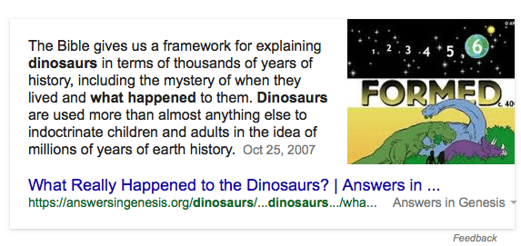 Why is this Google search result so offensive? Becuase it mentions the bible and creation. The
